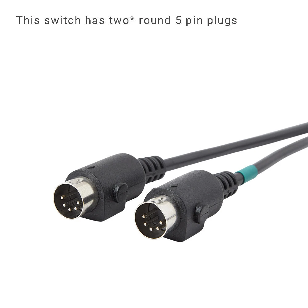 - Dual 5-pin plug This switch has Two 5 pin round plugs.